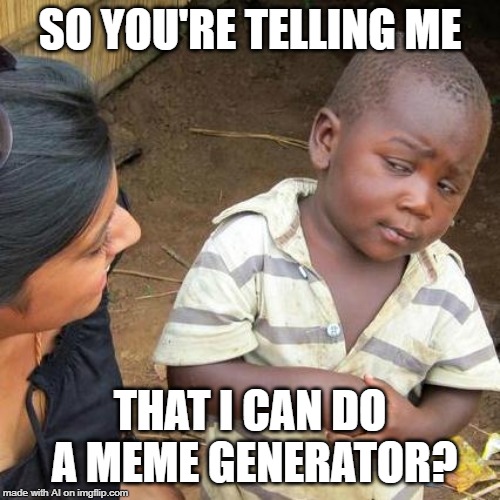 Imgflip Meme Generator Tutorial., This is a tutorial on how to upload memes on a popular meme generator called imgflip. . We Have got 13 pic about Imgflip Meme Generator Ai images, photos, pictures, backgrounds, and more. In such page, we additionally have number of images out there. Such as png, jpg, animated gifs, pic art, symbol, blackandwhite, images, etc. "Coding A Meme App In React", In this video we will code a meme creator / generator app in React. It's been a while since I've done a React tutorial and so this . "MEME GENERATOR", Technology has advanced so far that now robots can make their own memes. Does it always work? No, not exactly...